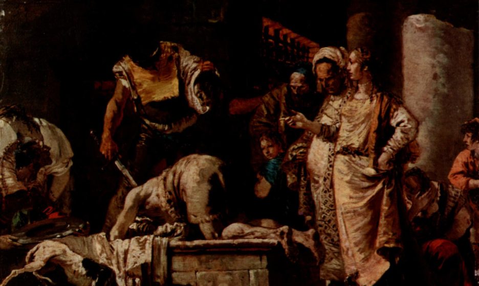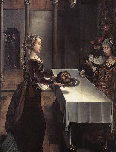 В день своего рождения Ирод устроил богатый пир, на котором перед гостями плясала Саломия, дочь Иродиады. Она так угодила этим Ироду, что он поклялся перед гостями дать ей все, чего бы она ни попросила. Саломия пошла к матери за советом. Иродиада научила дочь просить голову святого Иоанна Крестителя. Ирод опечалился: он боялся гнева Божиего за убийство пророка, но не мог нарушить неосторожной клятвы.