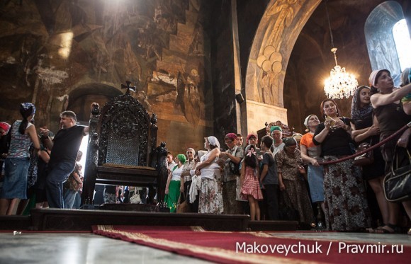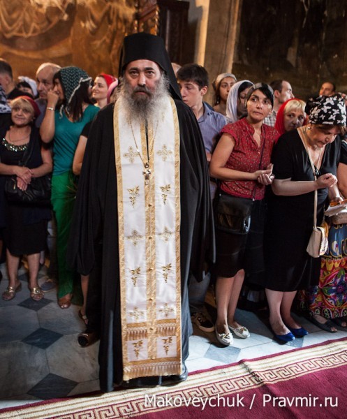 Летом, как говорят жители Тбилиси, в храмах народу меньше, чем в другие периоды — в августе многие уезжают на каникулы и в отпуска. Это, правда, не мешает собору Сиони в канун Мариамоба вместе с площадью вокруг быть заполненными до отказа. И не в том даже дело, что Успение в Сиони — престольный праздник, а службу возглавляет Предстоятель Грузинской Церкви — Патриарх-Католикос Илия. Просто в Грузии высокий процент верующих.