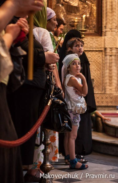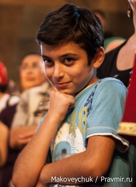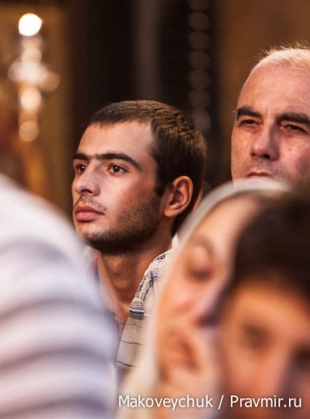 В соборе много детей, что для нас привычно, и молодежи, в том числе мужчин, что совсем неожиданно.