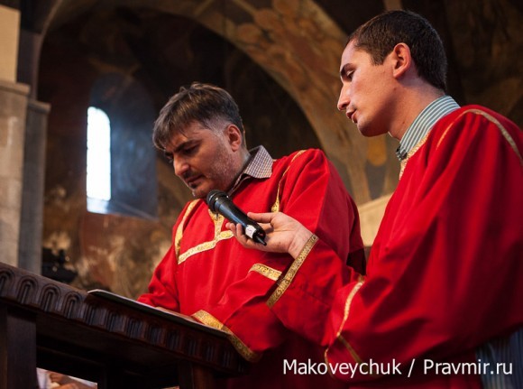 Мы не понимаем ни слова и следим за службой по памяти и книгам. Улавливаем трогательные детали: колокольный звон сильно отличается от нашего, «Отче наш» читают хором, на литии освящаются не маленькие хлебушки, а длинные грузинские лаваши.