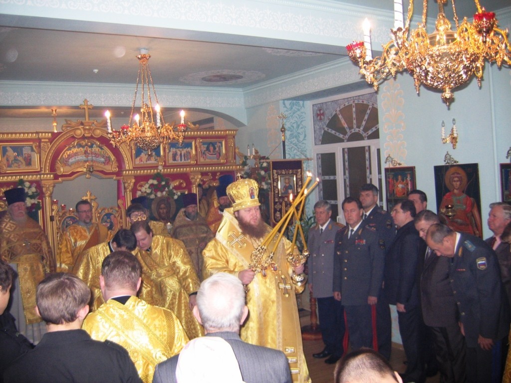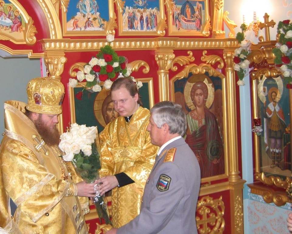 После литургии с приветственным словом выступил начальник Академии генерал-полковник полиции Владимир Васильевич Гордиенко: «Святой князь Александр Невский служил Богу и Отечеству. Сегодня в России не хватает руководителей, которые бы смысл своей жизни видели в вере и служении отечеству, бескорыстно, преданно, не жалея живота своего». По его словам «освящение храма поможет воспитывать руководителей в служении вере и в служении России». Он поделился со слушателями академии, собравшимися в храме, своими взглядами на происходящую ситуацию. По его мнению, причиной того, что в России царит алчность в экономике, в политике беспорядок, это то, что «в культуру сегодня закладывается не Божие начало, а сатанинское». «Освящение же храма поможет принести пользу в изменении духовно нравственного климата», — сказал Владимир Гордиенко, поблагодарив епископа Савву за совершение литургии и освящение храма.