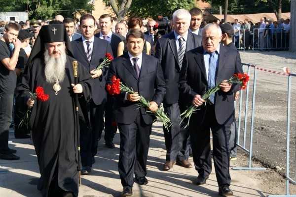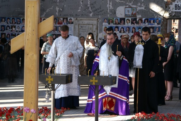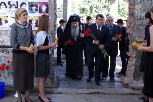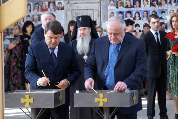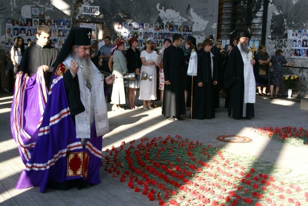 В скорбной процессии к месту теракта прошли архиепископ Владикавказский и Махачкалинский Зосима, глава Республики Северная Осетия-Алания Таймураз Мамсуров, члены правительства, главы и представители администраций Владикавказа и Беслана.