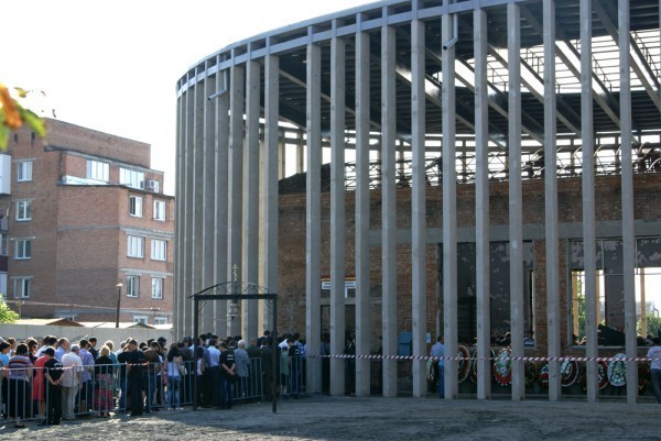 На три траурных дня в Беслане прервались работы по возведению мемориального комплекса во дворе школы №1. Вокруг спортзала уже установлены 103 колонны, чуть позже появится стеклянный купол. Но монтаж фасада мемориала будет проводиться уже после 3 сентября.