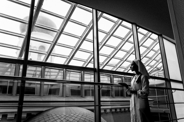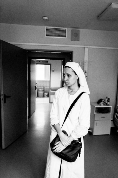 Пока отец Борис разговаривает с больным, мы ждем в коридоре. Проходящие мимо врачи сухо приветствуют, больные внимательно разглядывают. Анечка улыбается. Она окончила Свято-Димитриевское училище сестер милосердия и осталась работать при храме. Спрашиваю о том, как ей работается требной сестрой.
