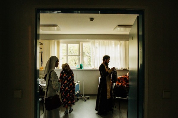 После литургии при храме святого праведного царевича Димитрия при Первой Градской больнице иерей Борис Осипов и требная сестра Анна отправляются в обход. На сегодня в списке девять пациентов, их предстоит исповедовать и причастить.