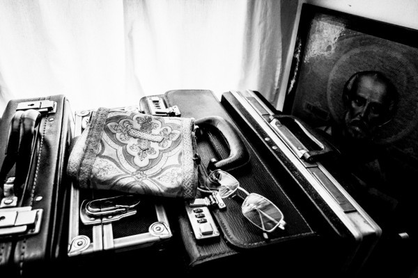 Все необходимое с собой – в специальном «дежурном чемодане», в ризнице при храме их целая батарея. На груди священника висит дароносица, которую он инстинктивно придерживает рукой почти все время обхода.