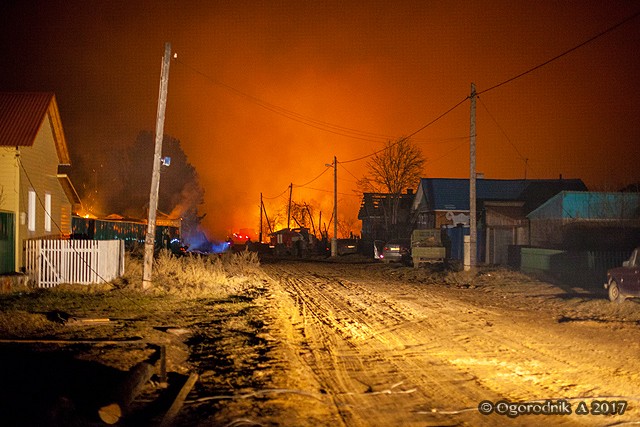 Надворные постройки в селе загорелись, предположительно, от пала травы, штормовой ветер мгновенно распространил огонь по населенному пункту. Огнем было охвачено 21 строение, среди которых 17 — жилых домов. В целом в селе было 33 дома, в которых жили 35 человек.