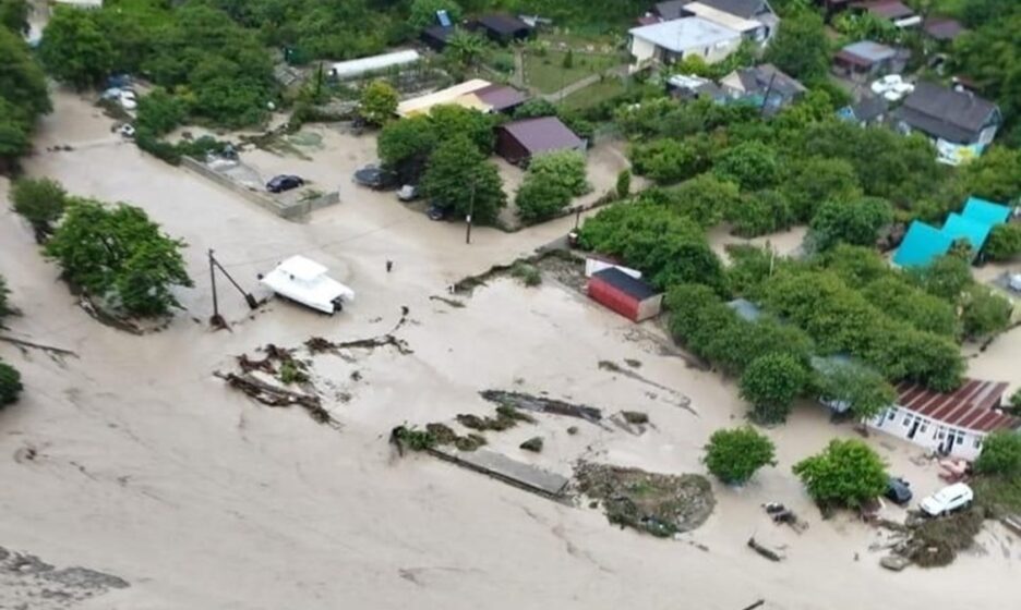 Из-за большого количества осадков в горных районах недалеко от поселка Зубова Щель из берегов вышла река Чемитоквадже.