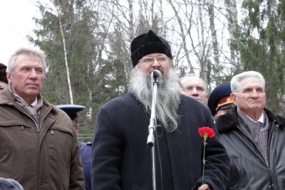 Мои друзья сказали самые сокровенные слова об этих замечательных людях. Я хочу еще сказать вам: рядом находится храм, разрушенный бесовскими силами. И решили друзья восстановить его, это ведь рядом с местом гибели. Нашлись честные добрые россияне, они среди вас. Они восстановили храм, восстановили колокольню, создали звонницу.