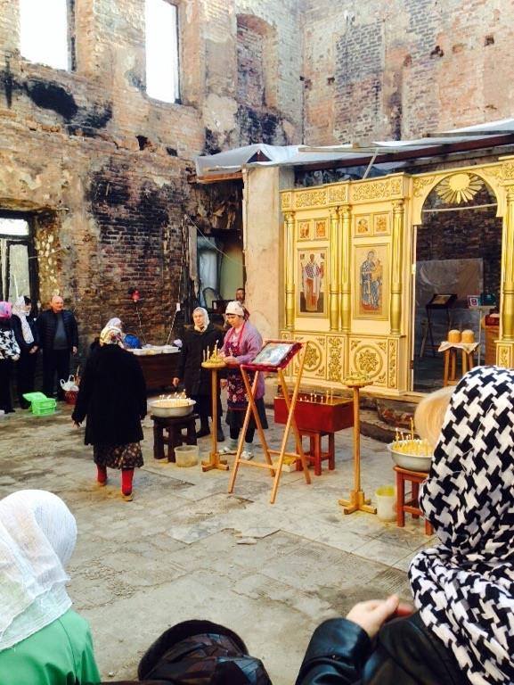 В Донецке пасхальное богослужение прошло в разрушенном от артобстрела храме
