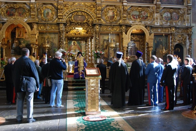 Перед началом заседания в Большом соборе Донского монастыря епископ Павлово-Посадский Кирилл совершил молебен перед Донской иконой Божией Матери, по завершении которого обратился к участникам Казачьего Круга с приветственным словом.