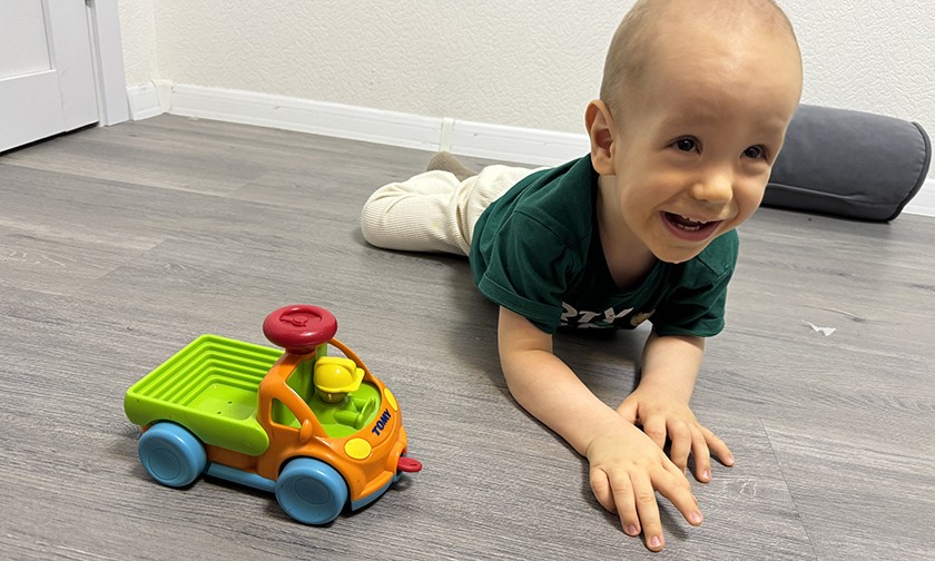 Ему делали массаж, возили в бассейн, на Бобат- и Войта-терапию, кололи ноотропы для стимулирования работы мозга, и в 10 месяцев Мирон впервые перевернулся со спины на живот. Это была первая победа. Ползать по-пластунски, с поддержкой вставать, делать первые шаги в ходунках он стал только после года. Сидеть без поддержки не может до сих пор, постоянно заваливается на бок.
