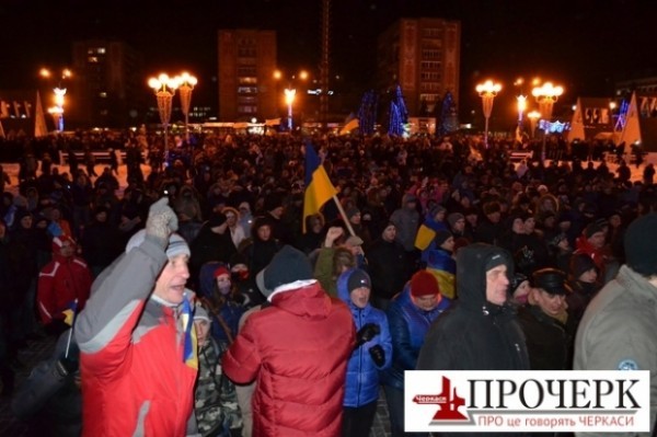 В Черкассах за штурм областной администрации задержано почти 60 человек. Сотрудников пришлось эвакуировать через окна. По факту совершенных правонарушений открыто уголовное производство.Как сообщает СОС УМВС Украины в Черкасской области, 23 января на Соборной площади Черкасс около 300 граждан выломали двери здания областной государственной администрации, зашли в фойе, повредили и подожгли имущество. При этом молодые люди использовали пиротехнические средства, камни, железные прутья.