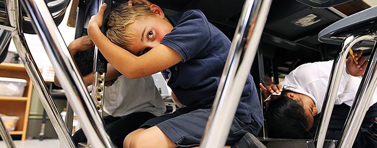 В помещении не толпитесь, рассредоточьтесь. Не стойте напротив двери — через нее могут стрелять. Используйте мертвые зоны вне сектора обстрела из двери или окон. Возможно, стоит лечь на пол или залезть под парты.