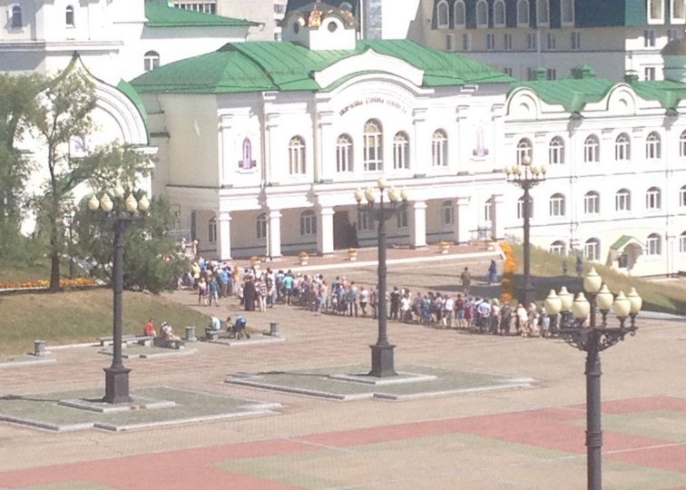 24 августа, ПРАВМИР: В Хабаровске на площади Славы выстроилась длинная очередь к иконе Иннокентия Московского, которая недавно замироточила. Взрослые и дети ожидают возможности взглянуть на «плачущий» лик, пишет ИА AmurMedia.