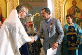 Правящий архиерей объявил о награждении архиерейскими грамотами наиболее отличившихся при возведении храмового комплекса и внесших свой вклад в это дело.