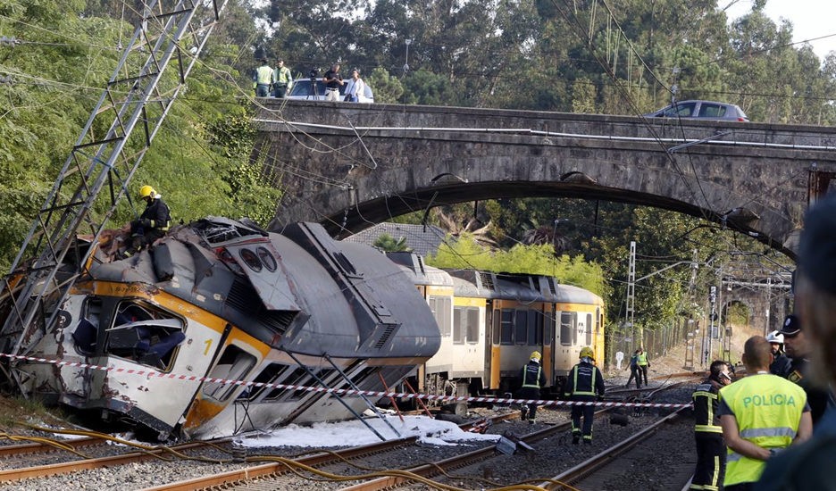 Фото: M. MORALEJO M. TORRESПоезд ехал из города Виго в Валенса-ду-Минью (северная Португалия). Авария произошла, когда он приближался к станции. Сначала перевернулся один вагон, следом за ним — еще два.