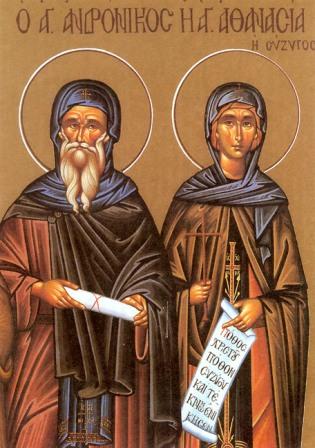 Так случилось и со святыми Андроником и Афанасией. Они были супругами. Андроник был золотых дел мастером и обладал немалым состоянием. На одну часть своих доходов он кормил семью. Вторую раздавал бедным, а третью без процентов давал людям, нуждавшимся в деньгах. В их семье росли две прекрасные девочки. И однажды обе они умерли от болезни. Так родители похоронили обеих дочерей. Безутешная, Афанасия рыдала на их могиле. Плакал и Андроник. Разочарованный, он возвратился домой. Несчастная же Афанасия осталась. Она плакала на могиле и восклицала: “Дети мои, дети мои!” Близился закат, и кладбище должно было закрыться. Вдруг пребывающая в печали и горе Афанасия увидела приближающегося к ней монаха, обращающегося к ней со словами: “Госпожа, почему ты плачешь?”