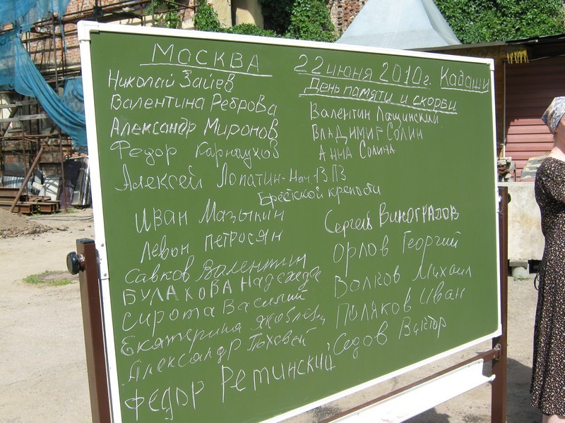 Во дворе храма была установлена доска, на который все желающие писали имена своих родных, погибших на войне.
