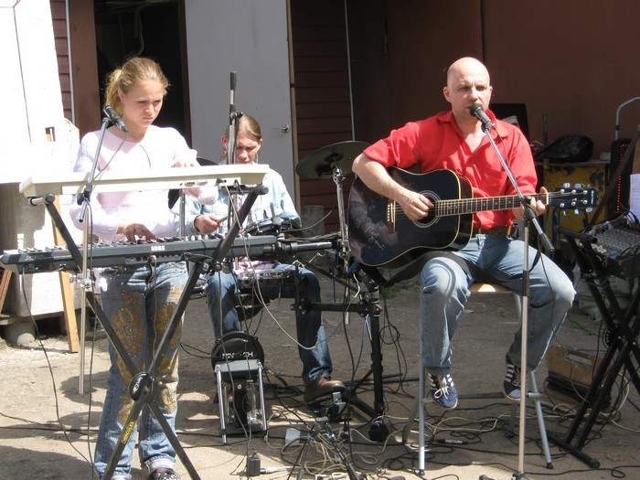 Затем на территории храма состоялось выступление рок-группы «Акулы», которые исполняли известные песни военных лет.