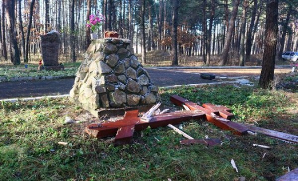 По данным СМИ, злоумышленники разрубили тесаком фигуру Христа на распятии. Кроме того, они разбили каменную доску на памятнике священника Василия Пинаева с изображением креста.