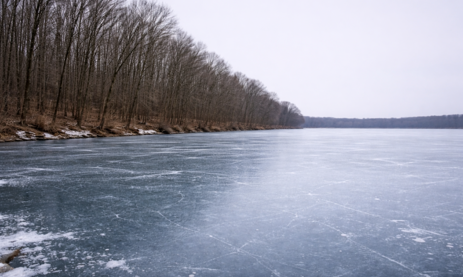 Редкие для региона морозы и снегопады привлекли множество людей к водоему в поселке Редукторный, несмотря на предупреждения администрации об опасности тонкого покрытия.