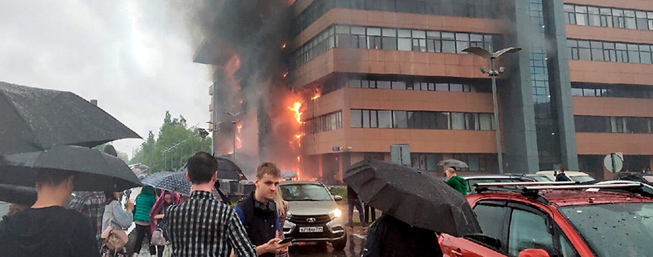 По предварительным данным, причиной пожара в БЦ стало короткое замыкание электропроводки из-за неправильного монтажа фасадного освещения.