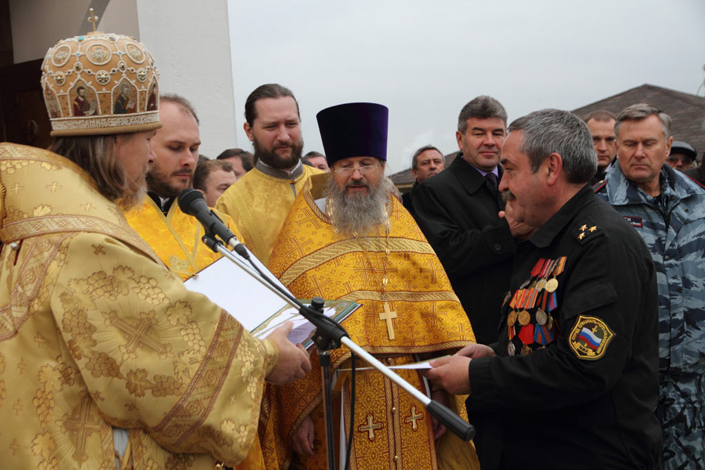 25 октября. ПРАВМИР. На территории городка ОМОНа в московском районе Строгино состоялось великое освящение храма во имя святого князя Димитрия Донского, воздвигнутого в память о погибших сотрудниках спецназа.