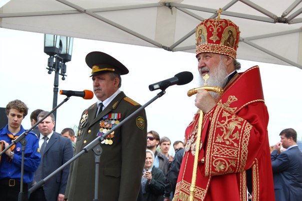 По окончании Божественной литургии в Свято-Георгиевском храме-памятнике в честь Победы в Великой Отечественной войне на Поклонной горе, на площади перед храмом Святейший Патриарх обратился к участникам парада с приветственным словом. Он поблагодарил всех организаторов и участников парада и пожелал им быть верными защитниками своего Отечества не только в случае военных действий, но по духу: всем образом жизни своей и мыслей своих быть истинными патриотами и хранить почтение к истории , традициям и исконной культуре русского народа, отстаивать русскую самобытность.
