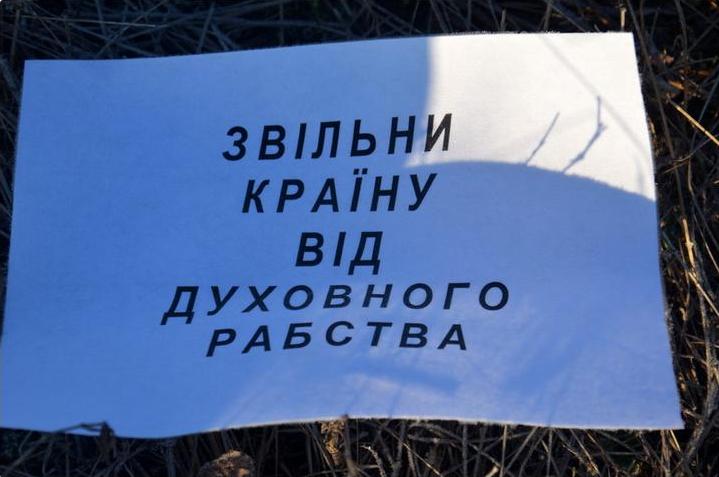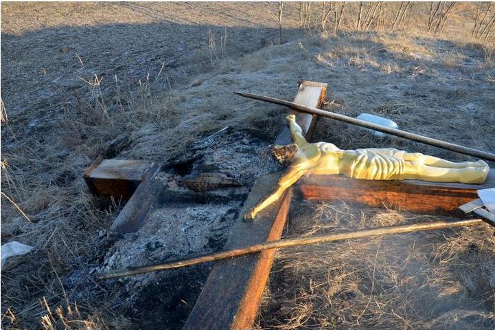 Поклонный крест на трассе в районе с. Семеновка Арбузинского района, был спилен, полит жидкостью для розжига и подожжён. Также возле поваленного креста были разбросаны провокационные листовки: «Звільни країну від духовного рабства».