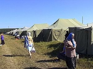 В палаточном городке в Дивеево разместилась первая тысяча паломников