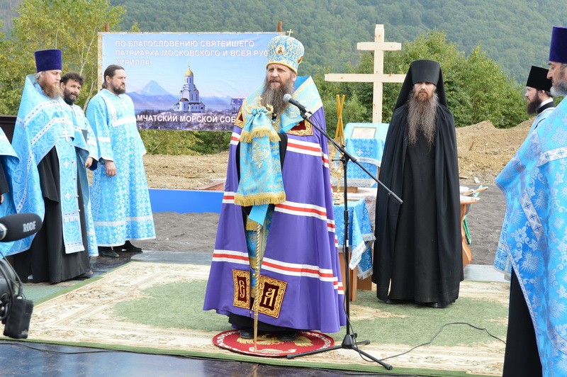 Совсем недавно Святейший Патриарх освятил аналогичный собор в Кронштадте. Кронштадский морской собор является символом защиты западных рубежей нашей Родины. Не так давно я встречался со Святейшим Патриархом Кириллом в Новосибирской митрополии, он передал мне благословение на строительство Камчатского Морского собора, сказал, что не сможет присутствовать на закладке собора, но постарается быть на его освящении. Поэтому я надеюсь, что строительство Камчатского Морского Собора станет делом каждого из нас».