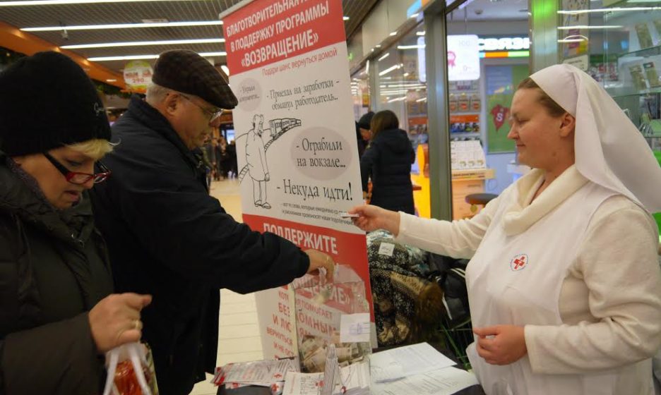Акция в поддержку благотворительной программы «Возвращение» православной службы помощи «Милосердие» прошла в пятницу в одном из московских торговых центров.