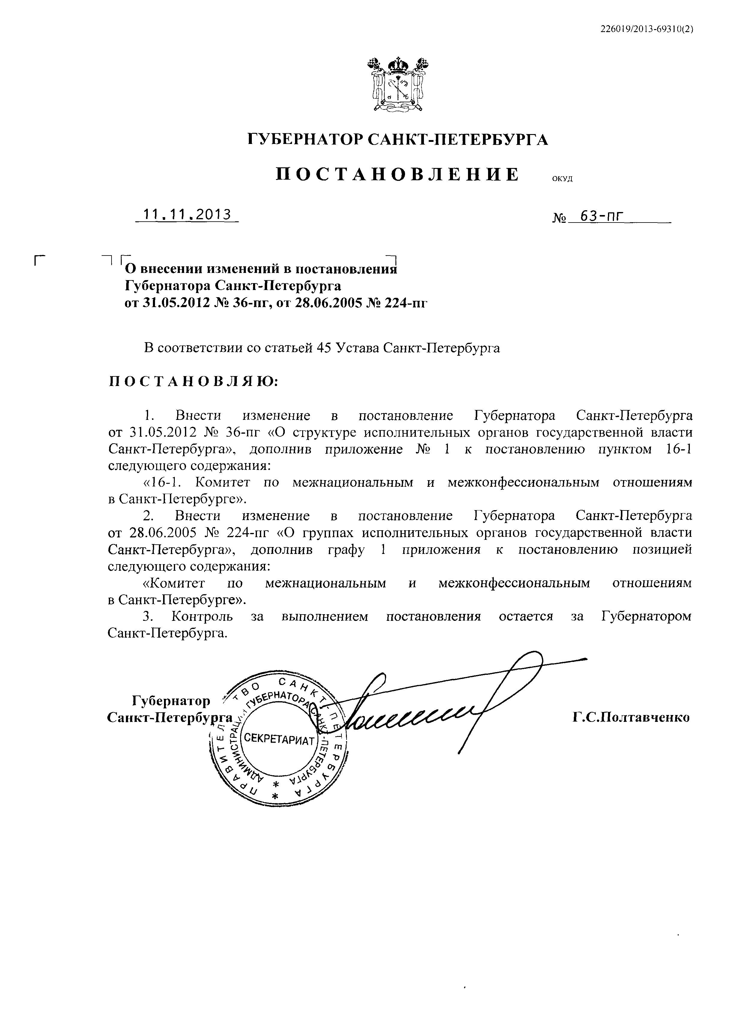 Губернатор Петербурга Георгий Полтавченко подписал постановление, изменяющее структуру исполнительных органов государственной власти.
