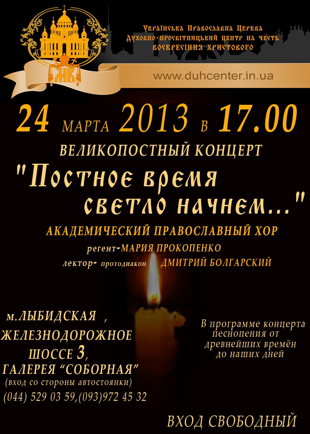 22 марта. ПРАВМИР. 24 марта в 17.00 в праздник Торжества Православия впервые в Киеве, в галерее «Соборная» пройдёт великопостный концерт, сообщается на сайте Духовно-просветительского Центра УПЦ в честь Воскресения Христова.