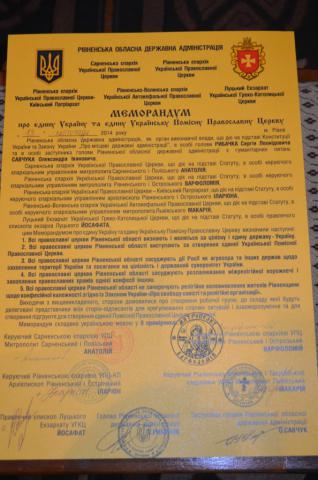 Ранее стало известно, что 13 ноября по инициативе местных властей в Ровенской области был принят документ, призывающий к созданию «единой Украинской поместной православной Церкви». Наряду с главой Ровенской гособладминистрации, представителями «Киевского патриархата» (КП) и Украинской автокефальной православной церкви, а также Украинской греко-католической церкви, бумагу подписали и два архиерея Украинской Православной Церкви Московского Патриархата — митрополит Сарненский и Полесский Анатолий и митрополит Ровенский и Острожский Варфоломей.