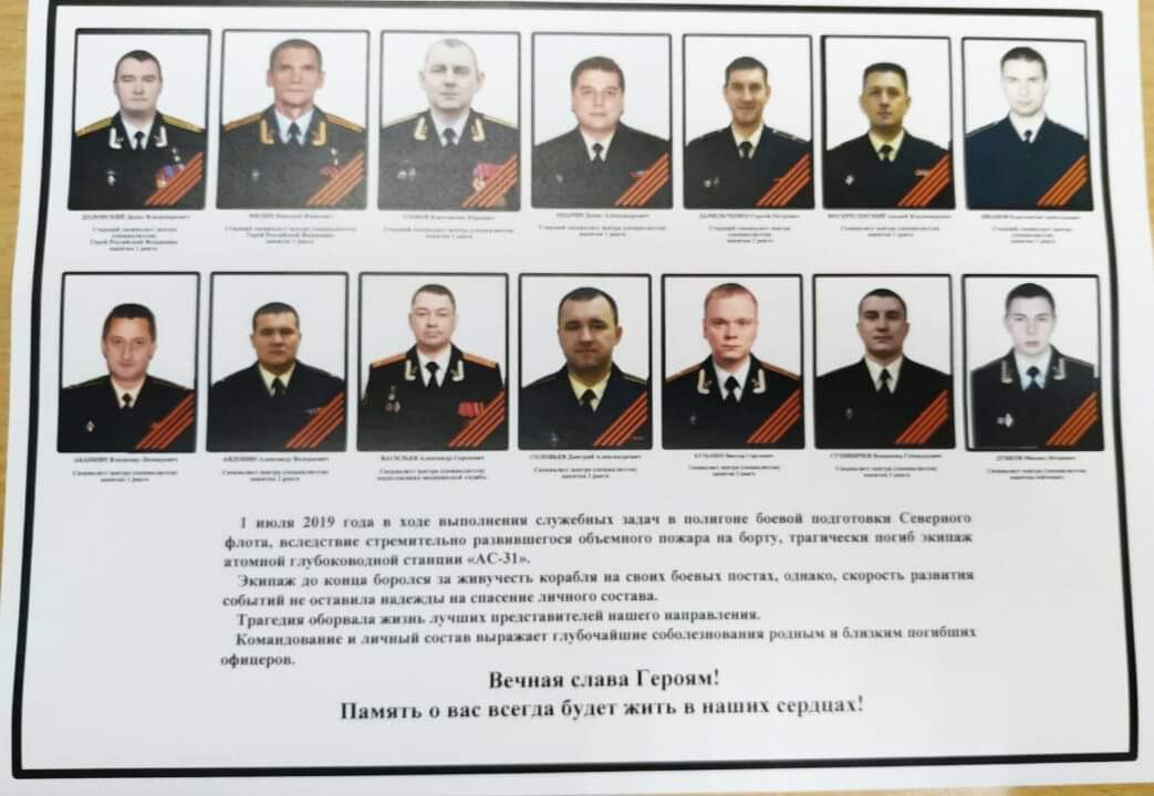 Среди погибших подводников семь капитанов первого ранга и двое героев России, сообщил вечером 2 июля президент Владимир Путин на встрече с министром обороны Сергеем Шойгу. Он отметил, что это «большая потеря для флота, да и вообще для армии».
