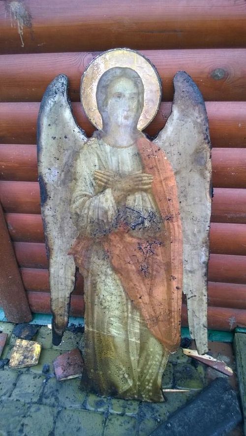 «Удалось спасти от пожара церковную утварь, ризницу и некоторые иконы. Утром на месте пожарища в пепле был найден почти невредимым образ святого Ангела», — отмечается в сообщении на сайте благочиния.