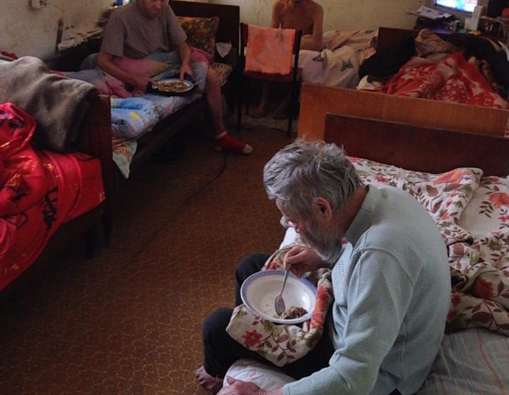 В приюте содержатся около 35 человек, причем 80% из них инвалиды, которые не могут ходить. По словам священника, выгоняя их на улицу, власти обрекают этих людей на гибель.