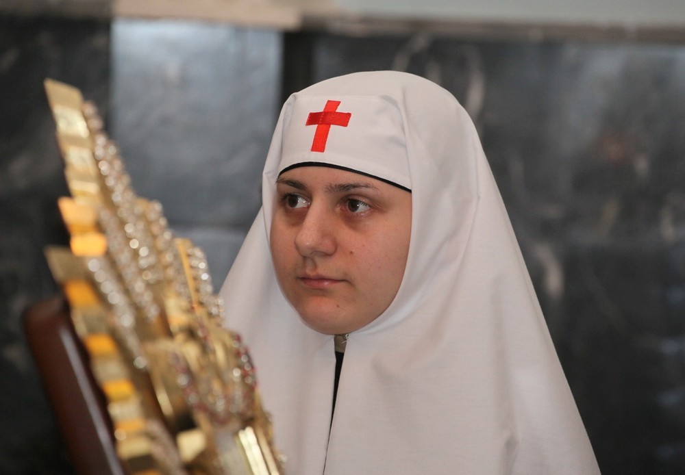 Митрополит Ташкентский и Узбекистанский вручил первым добровольцам платки сестер-послушниц. Ими стали: Елена Гончарова, Надежда Рыбасова, Светлана Уварова, Надежда Демина и Ольга Телина, которые уже на протяжении нескольких месяцев трудились на этом поприще и доказали, что могут быть достойны звания называться сестрами милосердия. Платки помогли одеть сестры милосердия Киево-Печерской лавры.