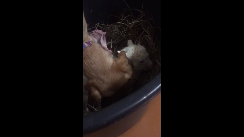 24 февраля. ПРАВМИР. В фермерском хозяйстве в Вологодской области собака Шлепа выходила слабого козленка.