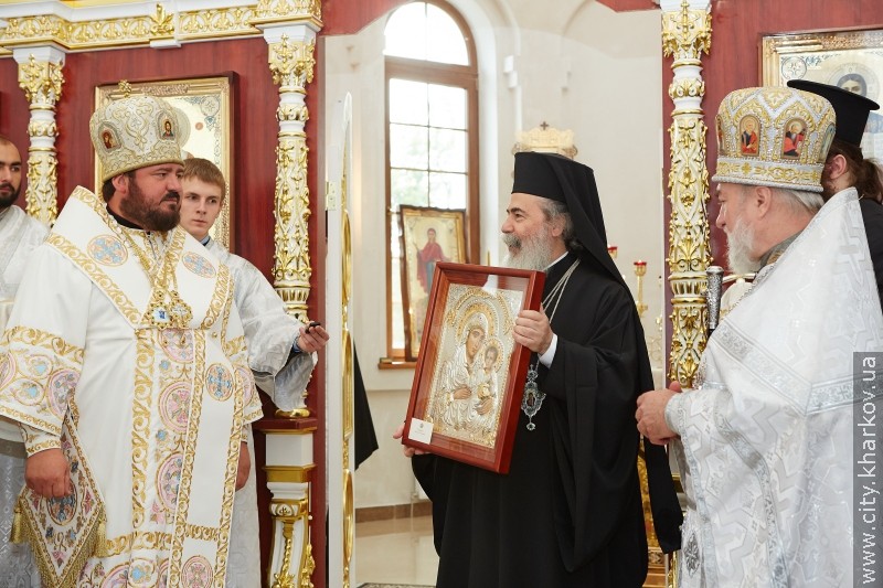 Перед праздничной службой к гостям церемонии обратился Патриарх Иерусалимский и всей Палестины Феофил III, прилетевший в Харьков вчера. Он благословил новый храм, отметив тесную и благотворную связь Харькова с Иерусалимом.