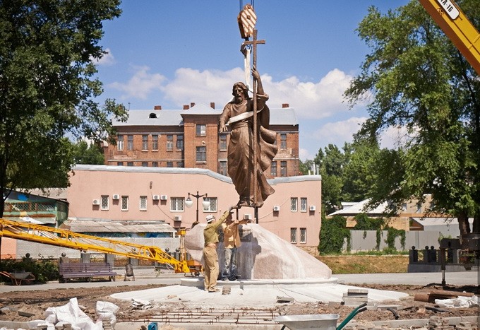 Как сообщил главный архитектор Харькова Сергей Чечельницкий, сегодня на постаменте будущего памятника монтируют бронзовую скульптуру святого.