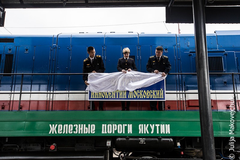 Молебное пение и освящение локомотива совершил епископ Якутский и Ленский Роман с хором духовенства Якутской епархии 22 сентября 2013 года на платформе железнодорожной станции «Алдан».