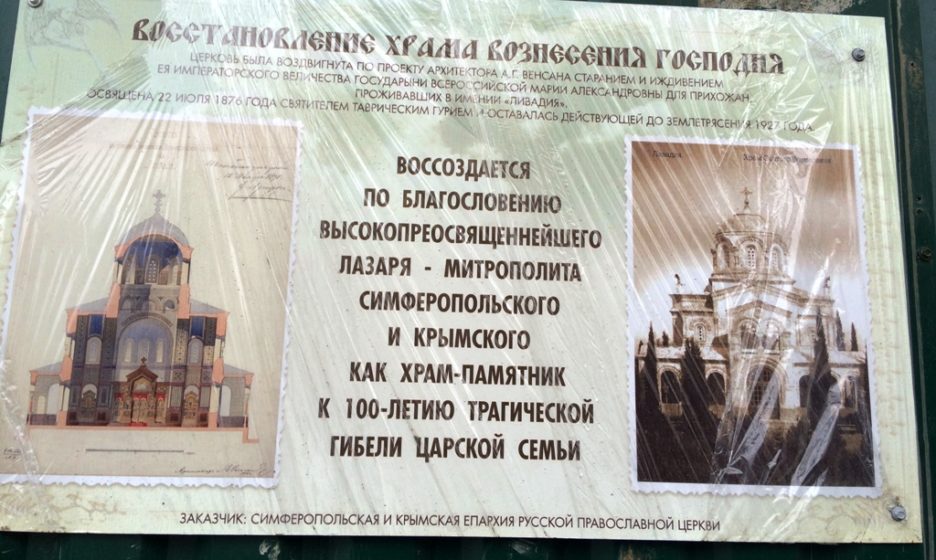 Строительство новой церкви будет воссозданием существовавшей до 1929 года в Ливадии церкви, воздвигнутой в 1876 году по инициативе государыни Марии Александровны. Храм оставался действующим до землетрясения 1927 года. Тогда еще два года храм простоял закрытым, пока в 1929 году с разрешения городских властей не был разобран самими же ялтинцами на строительные материалы. В дворцовой церкви в Ливадии до сих пор хранятся «принесенные покаявшимися прихожанами четыре резные капители из каррарского мрамора, некогда украшавшие храмовые галереи».