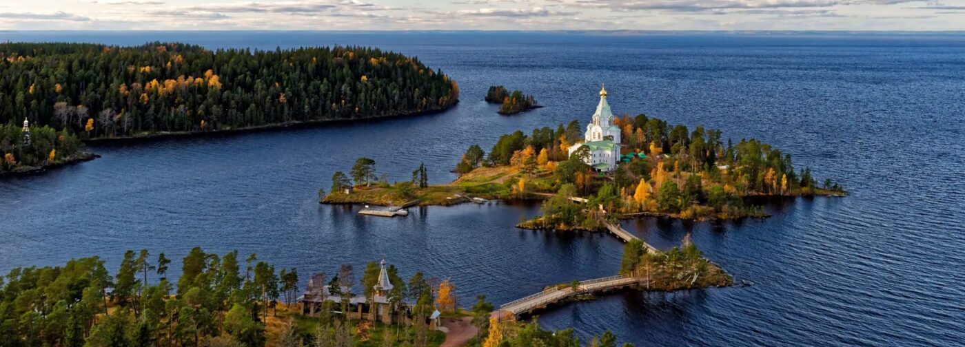 Один из оплотов русского православия расположен в удивительной природной среде… Есть что-то в самом ее характере умиротворяющее душу, она будто бы иллюстрирует слова Лермонтова о том, как «пустыня внемлет Богу». «В обители глухая тишина: дремлет Валаам под усыпляющий шепот сосен, под всплески Ладоги; а здесь уж не тишина, а глуше и глубже тишины: покой», – писал о своих ощущениях после поездки на остров И. С. Шмелев.