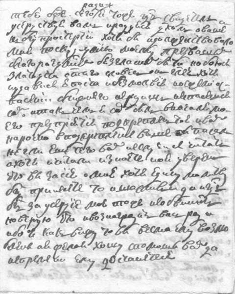 При публикации первого “заветного” письма — уникального памятника аскетической письменности начала XIX века — мы сочли необходимым передать особенности этого текста, сохранив вышедшие из употребления буквы русского алфавита. Надстрочные знаки, бессистемно употребляемые в оригинале, опущены. Написание предлогов, которые в этих текстах часто пишутся слитно, приведено в соответствие с современными нормами. Там, где это было необходимо по смыслу, точка заменена запятой. Сокращения под титлами раскрываются в квадратных скобках. Выносные буквы вносятся в строку. В остальном мы сохранили графику и особенности написания первого, орфографию и пунктуацию первого и второго письма. Во втором письме явные ошибки и описки исправлены, частично сохранены особенности графики. В обоих письмах в угловых скобках помещены реконструкции публикатора. Знаком // обозначен конец страницы.
