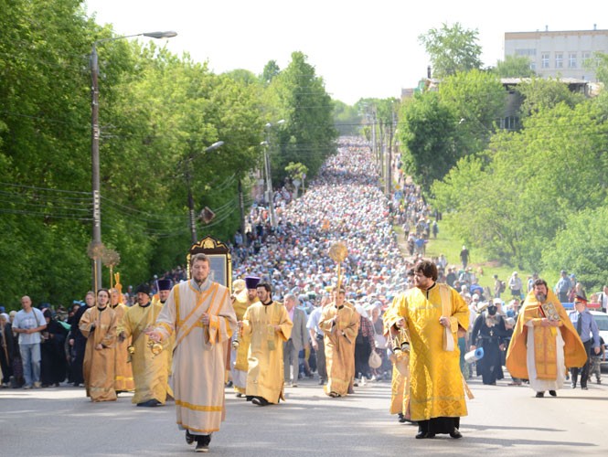 Колонна паломников следует из Трифонова монастыря в Троицкую церковь села Макарье близ Кирова, где состоится молебен. После молебна в Троицкой церкви часть паломников вернется в город, остальные проследуют далее по маршруту Великорецкого крестного хода на реку Великую.