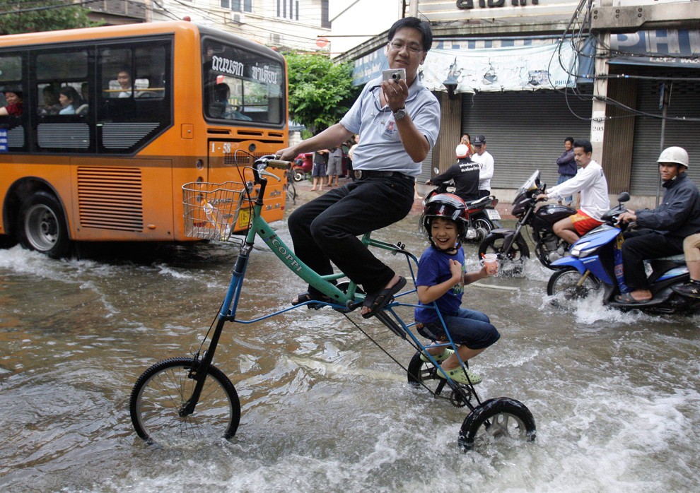 Трехколесный велосипед для наводнений. Бангкок, 2011 год