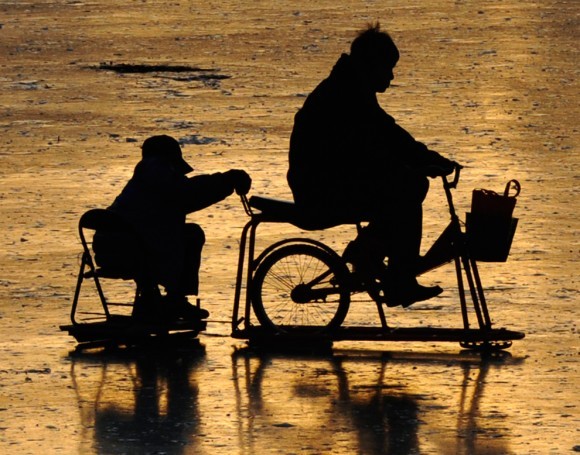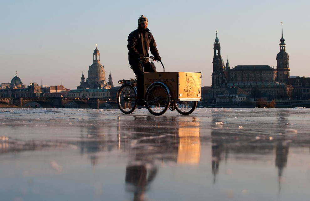 Через замерзшую Эльбу - на велосипеде! Дрезден, 2012 год